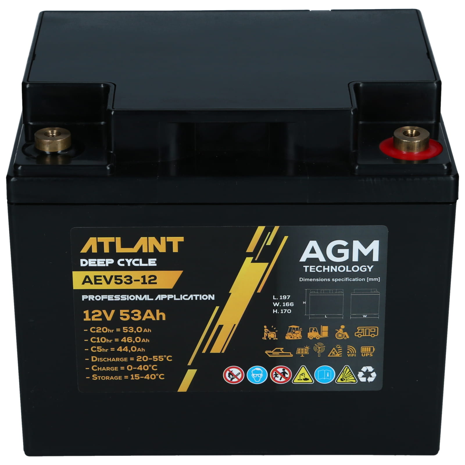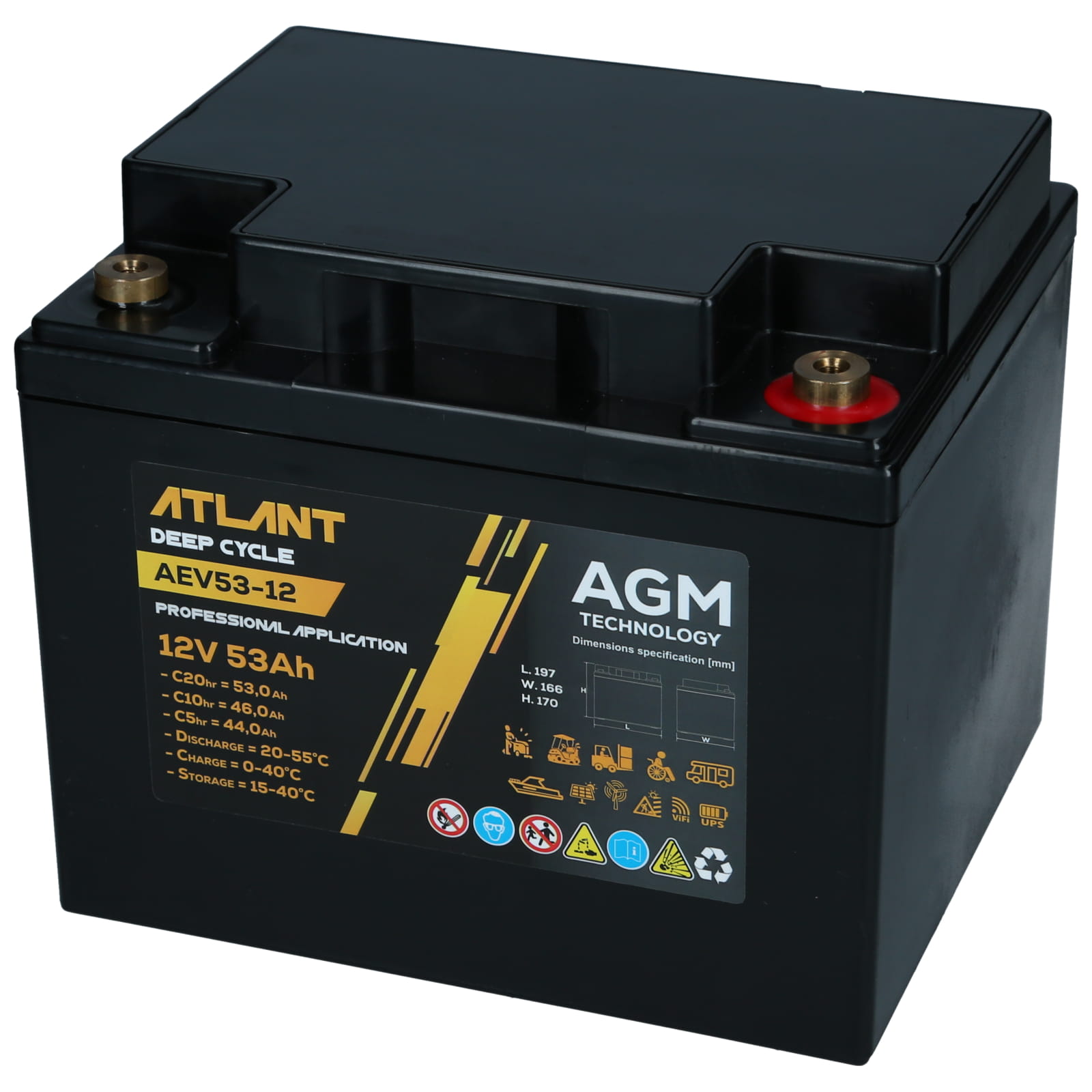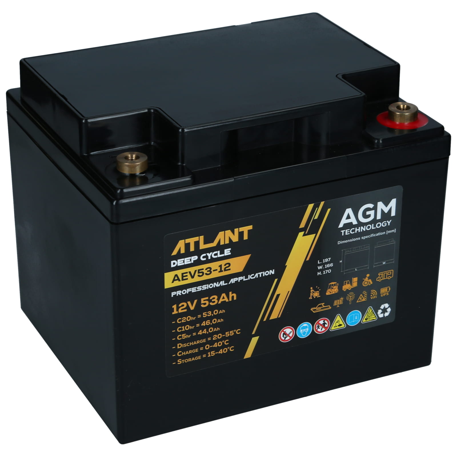 Specyfikacje dla Akumulator ATLANT Deep Cycle 12V 50Ah AEV53-12 197*166*170 M6 L Atlant AEV53-12