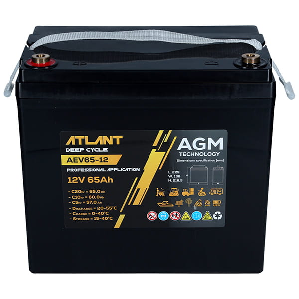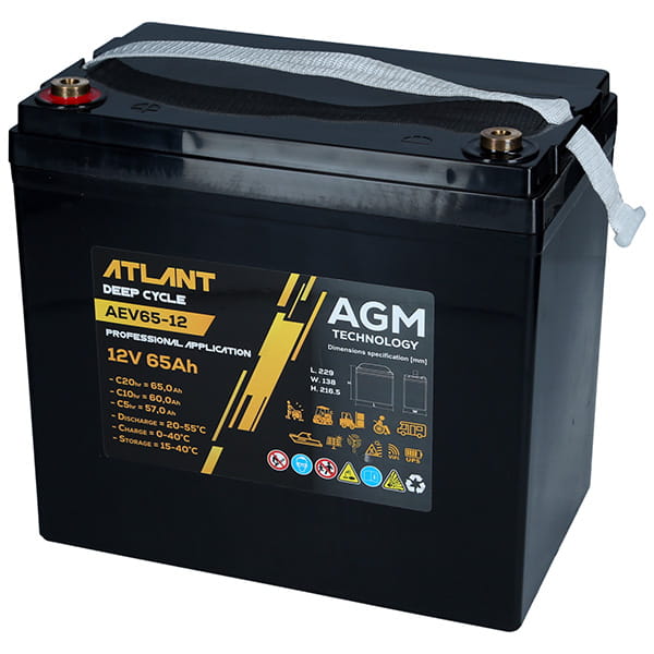 Akumulator ATLANT Deep Cycle 12V 65Ah AEV65-12 230*138*210 L