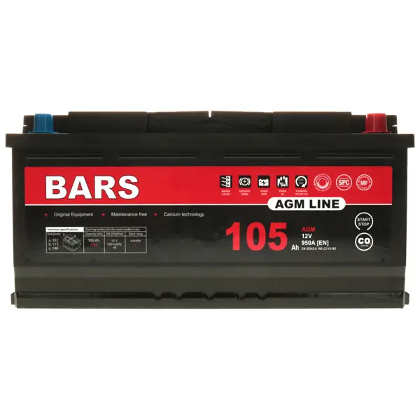 Akumulator Bars AGM LINE 105Ah 950A L6 Start-Stop P+