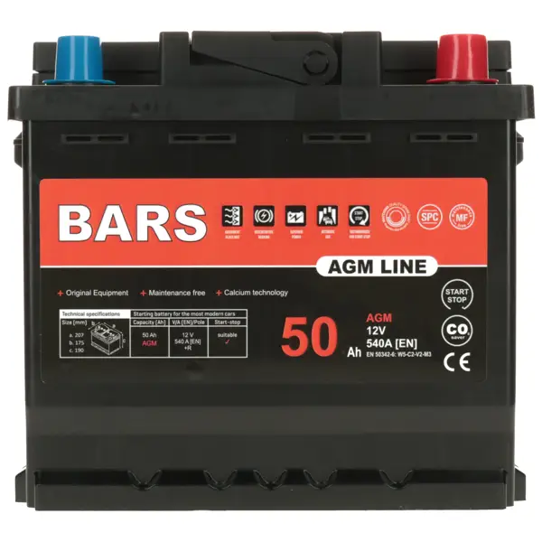 Akumulator Bars AGM LINE 12V 50Ah 540A L1 Start-Stop P+ (C)