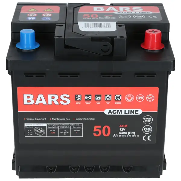 Specyfikacje dla Akumulator Bars AGM LINE 12V 50Ah 540A L1 Start-Stop P+ (C) Bars BM50C
