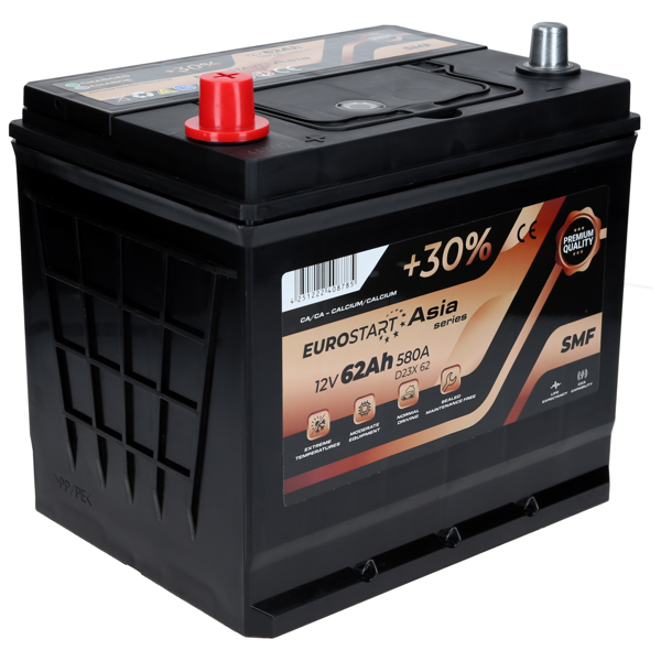 Akumulator Eurostart 62Ah/580A +L Asia D23X/B01