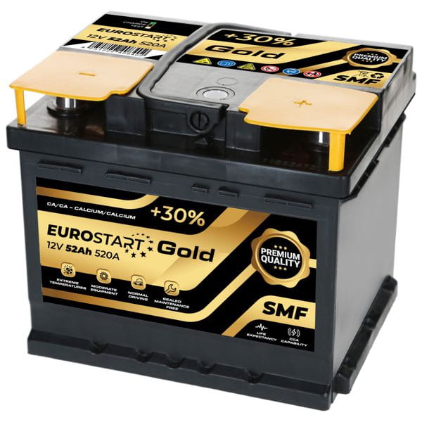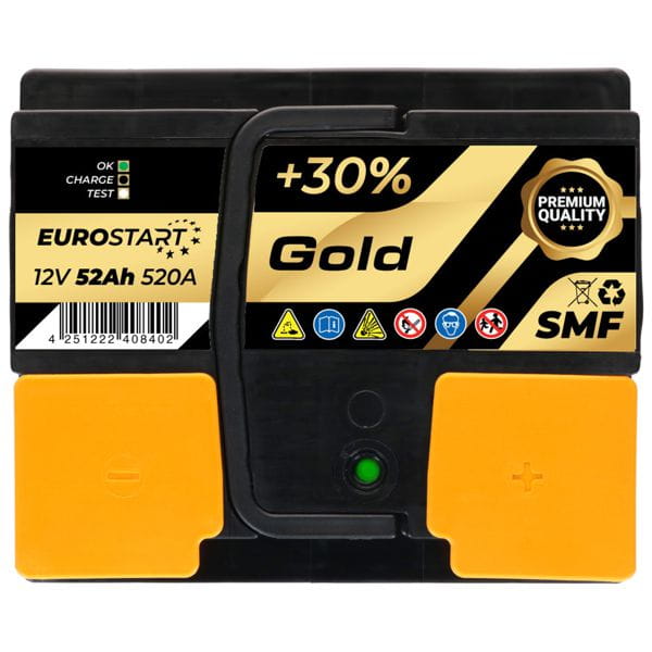 EUROSTART Gold to szeroka seria akumulatorów samochodowych, spełniająca wszystkie specyfikacje parku samochodowego i oryginalnego wyposażenia. Została zaprojektowana z myślą o pojazdach o przeciętnym wyposażeniu, które wymagają dodatkowej mocy rozruchowej przy jednoczesnym utrzymaniu wysokiej wydajności przez długi czas.