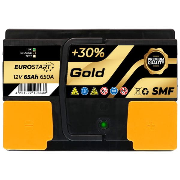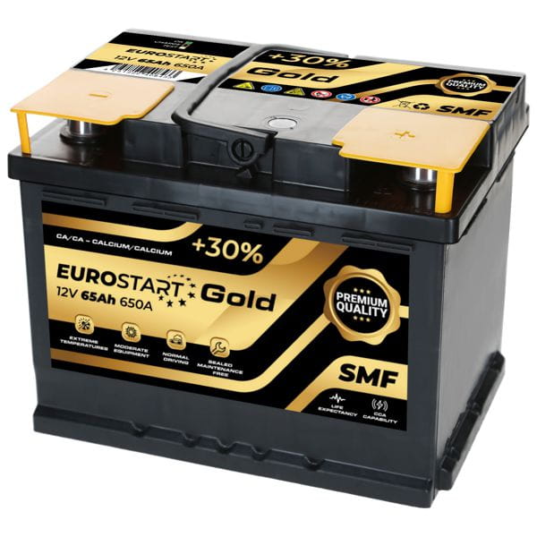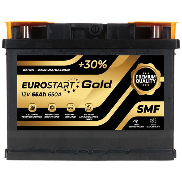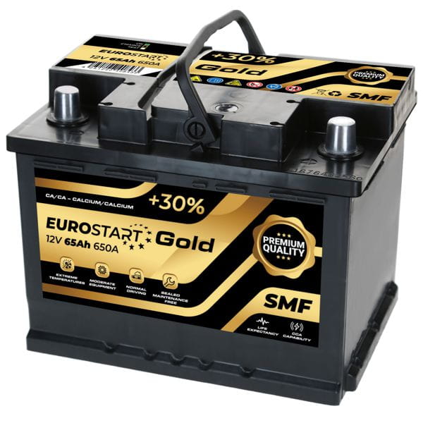 EUROSTART Gold to szeroka seria akumulatorów samochodowych, spełniająca wszystkie specyfikacje parku samochodowego i oryginalnego wyposażenia. Została zaprojektowana z myślą o pojazdach o przeciętnym wyposażeniu, które wymagają dodatkowej mocy rozruchowej przy jednoczesnym utrzymaniu wysokiej wydajności przez długi czas.
