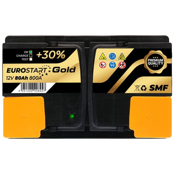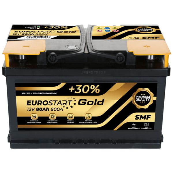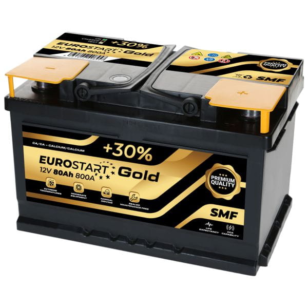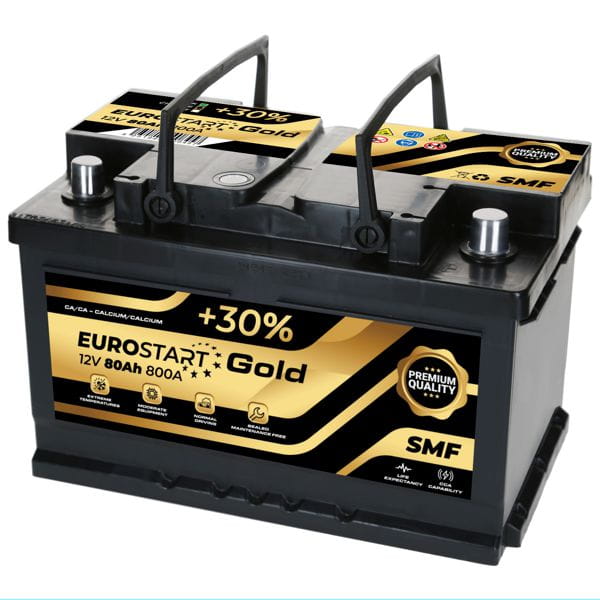 EUROSTART Gold to szeroka seria akumulatorów samochodowych, spełniająca wszystkie specyfikacje parku samochodowego i oryginalnego wyposażenia. Została zaprojektowana z myślą o pojazdach o przeciętnym wyposażeniu, które wymagają dodatkowej mocy rozruchowej przy jednoczesnym utrzymaniu wysokiej wydajności przez długi czas.
