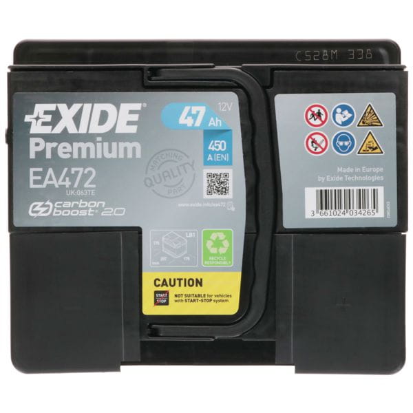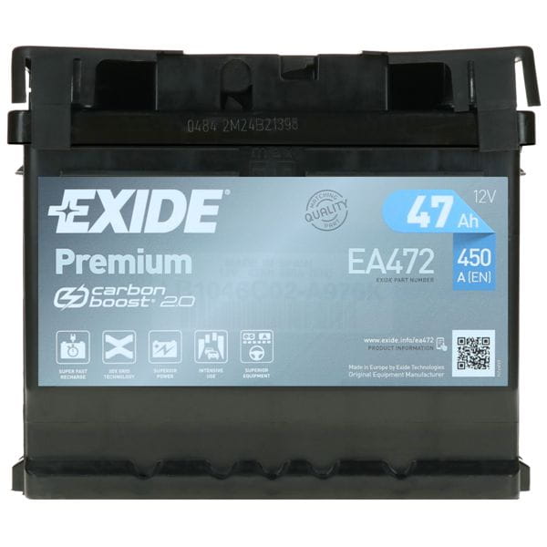 Specyfikacje dla Akumulator Exide EA472 47Ah 450A L1B P+ Premium