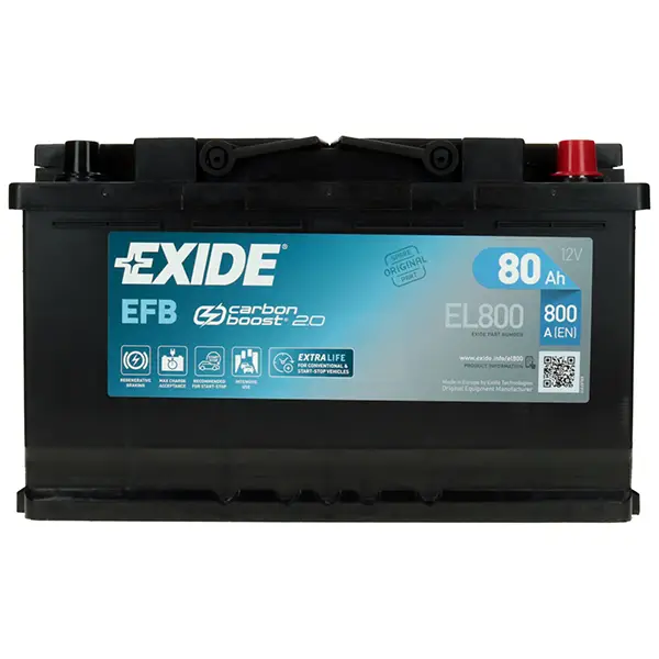 Akumulator EFB (Enhanced Floaded Battery) marki Exide jest uznawany za najbardziej zaawansowany w przemyśle motoryzacyjnym. Powstał dzięki inwestycji firmy w prace badawczo-rozwojowe i doświadczeniu zdobytemu we współpracy z wiodącymi producentami samochodów. Akumulator EFB najnowszej generacji oferuje znacznie lepszą zdolność przyjmowania ładunku i dłuższą żywotność w pracy cyklicznej, co jest wynikiem przełomu w pracach badawczo-rozwojowych w zakresie stopów ołowiowych i wyjątkowych dodatków węglowych. Akumulatory Exide EFB doskonale współpracują z systemami Start-Stop, hamowania regeneracyjnego i innymi funkcjami oszczędzania paliwa.
