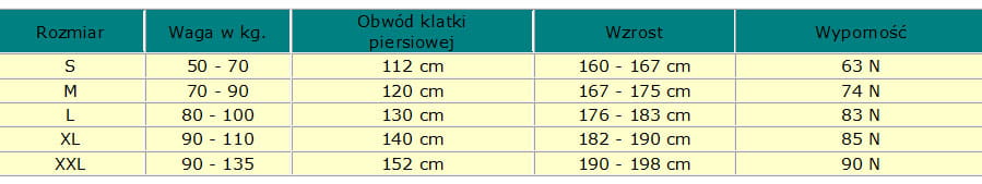 Przy doborze rozmiaru należy pomniejszyć o 5 %