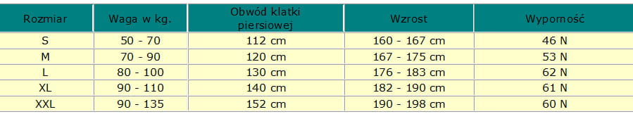 Wyporność kurtki do 60 N / zależnie od rozmiaru.