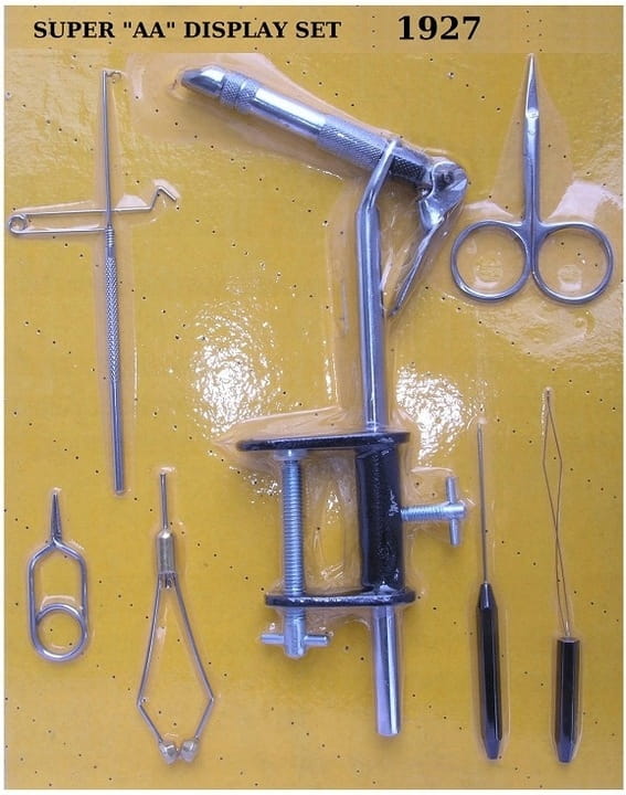 Komplet niezbędnych narzędzi z imadłem do wykonania sztucznych przynęt.