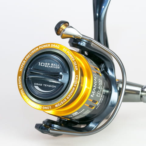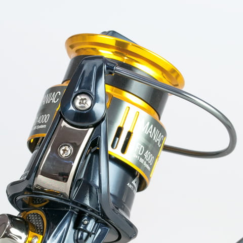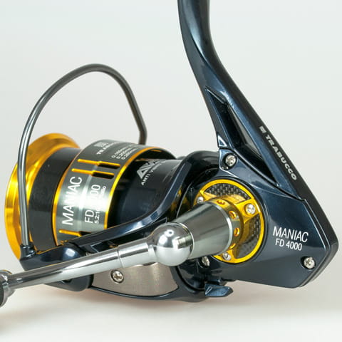 Maniak – tak często znajomi określają zapalonych wędkarzy i dla takich wędkarzy właśnie stworzyliśmy ten kołowrotek łączący w sobie wytrzymałość i płynność pracy. Korpus, rotor, rurkowy kabłąk, szpula i korba zostały wykonane w całości z aluminium. Zarówno szpula jak i korba są wycinane maszynowo z jednego kawałka aluminium. System hamulców działa doskonale. Górna krawędź szpuli w kształcie „V” zapewnia dłuższe rzuty. Front szpuli zabezpieczony przed wsuwaniem się żyłki do mechanizmu. 9+1 łożysk ze stali nierdzewnej dodatkowo zabezpieczonych przed działaniem niekorzystnych czynników. Dostępny w trzech rozmiarach Maniak to najlepszy wybór na feeder, odległościówkę i spinning