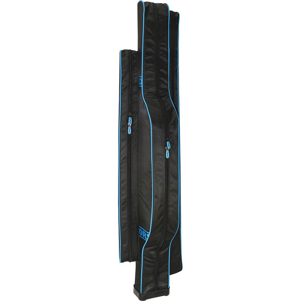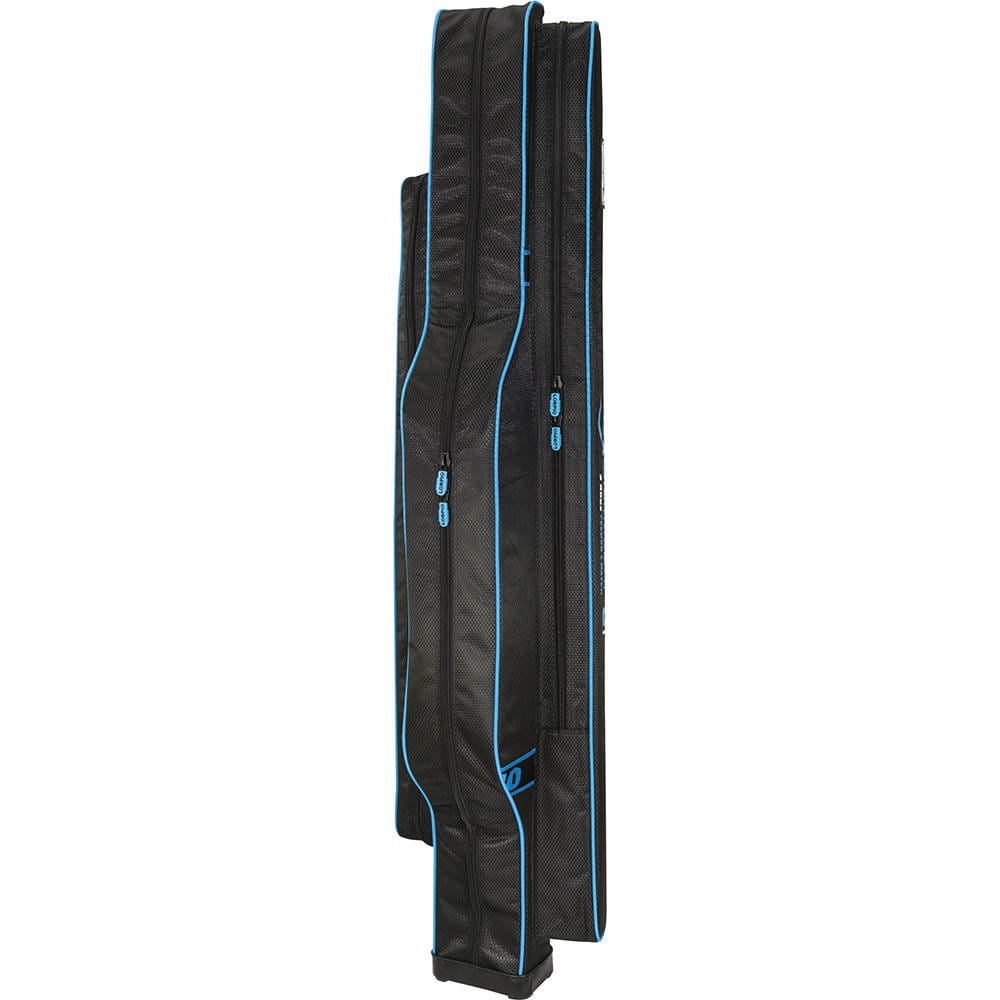 Dzięki specjalnie zaprojektowanej wewnętrznej przegrodzie pokrowiec mieści 3 uzbrojone wędki z kołowrotkami, zachowując szerokość standardowego pokrowca na 2 wędki. Wewnętrzne piankowe przegrody oraz rzepy chronią nie tylko wędki i kołowrotki, ale i żyłkę oraz zestaw ze spławikiem lub koszyczkiem zanętowym. Pokrowiec dodatkowo posiada dwie zewnętrzne komory na akcesoria. Twarde, łatwe do wyczyszczenia dno chroni przed wilgocią, gdy stawiasz pokrowiec pionowo.