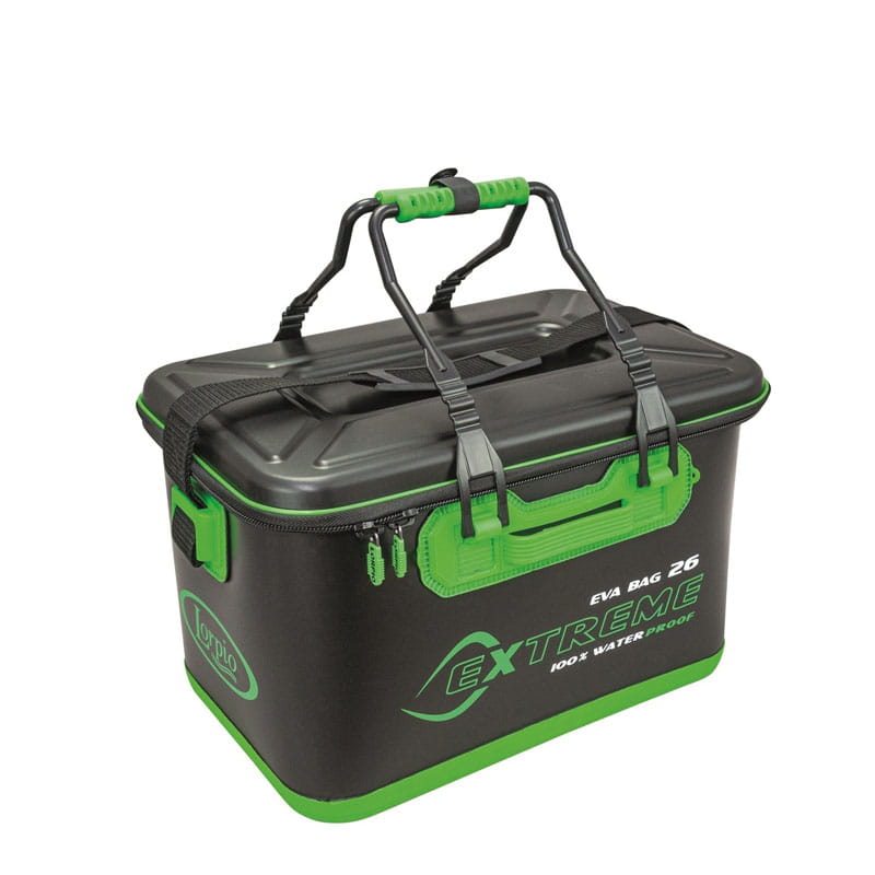 Wodoodporna, uniwersalna torba dla wszystkich wędkarzy łowiących z brzegu, łodzi lub z pokrywy lodowej. Wykonana z materiału EVA o grubości 1,8 mm. Twardy dekiel pełni funkcję stołu roboczego, gumowe mocne dno odporne na przetarcia, wygodne rączki i pasek naramienny. Mocny zamek z dwoma suwakami oraz nowoczesny design na najwyższym poziomie.